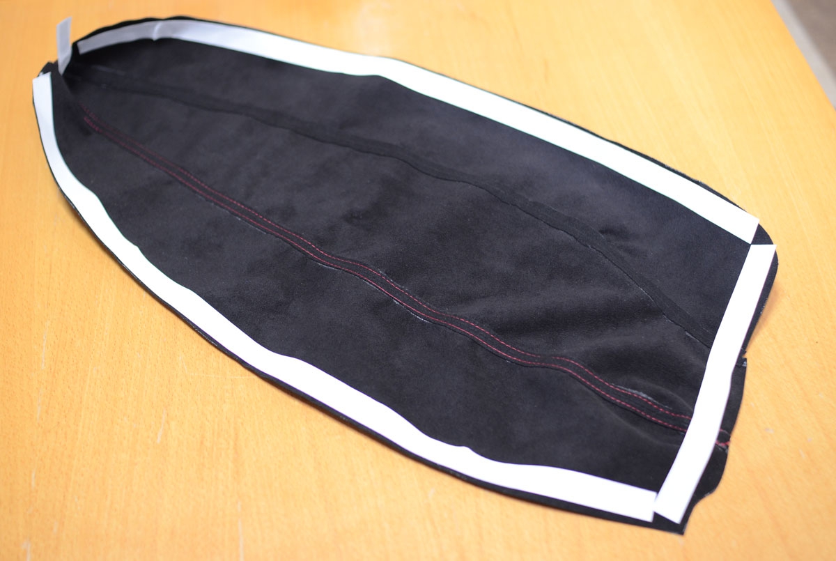 ステッチのラインがまっすぐになるよう、時々確認しながら貼ります。何度でもやり直しが効きますのでじっくり作業出来ます。