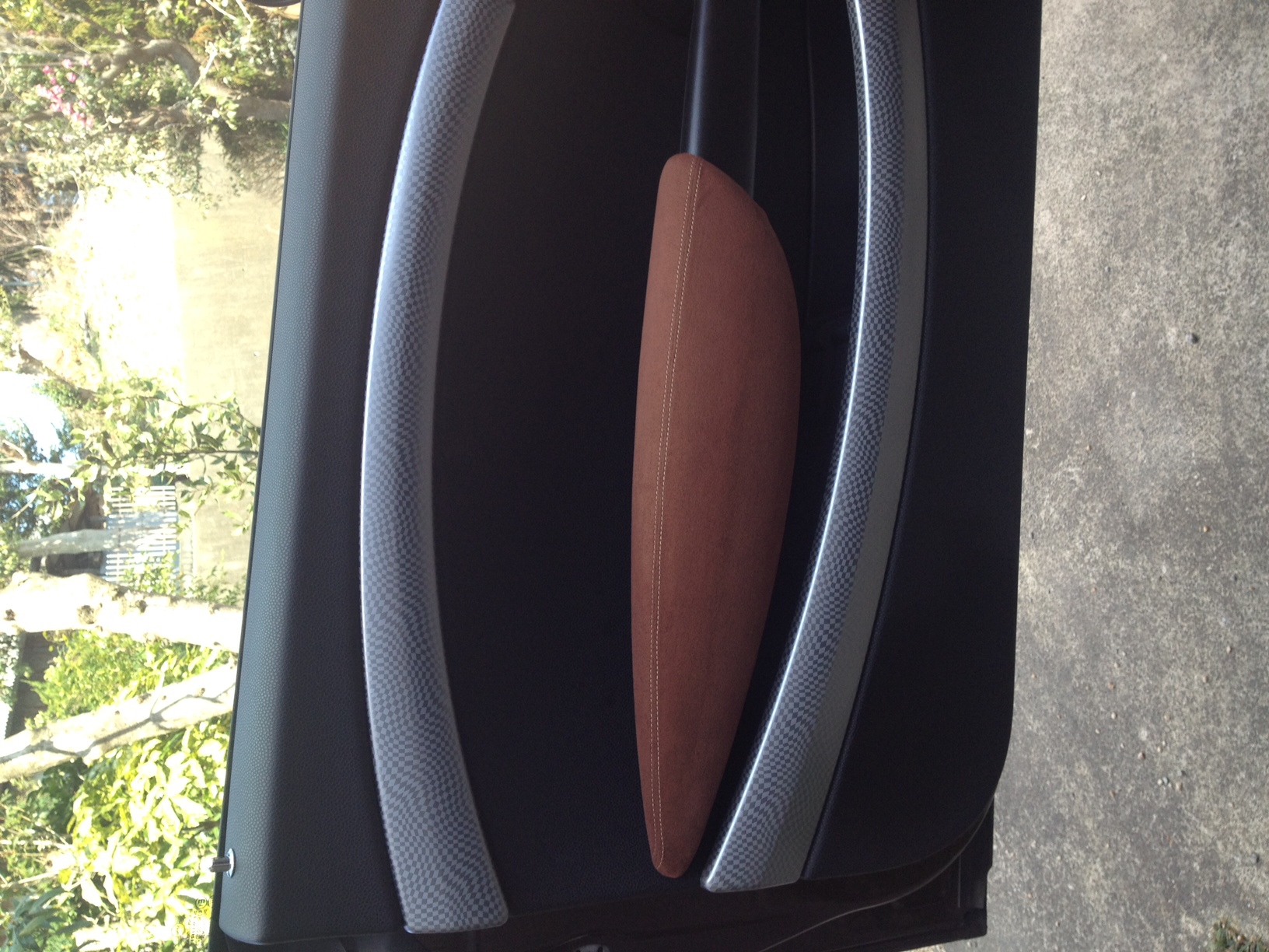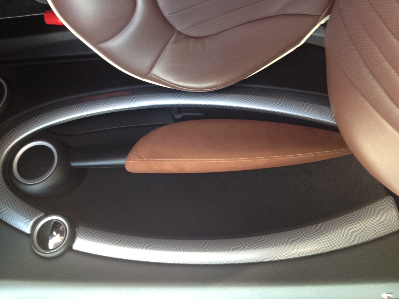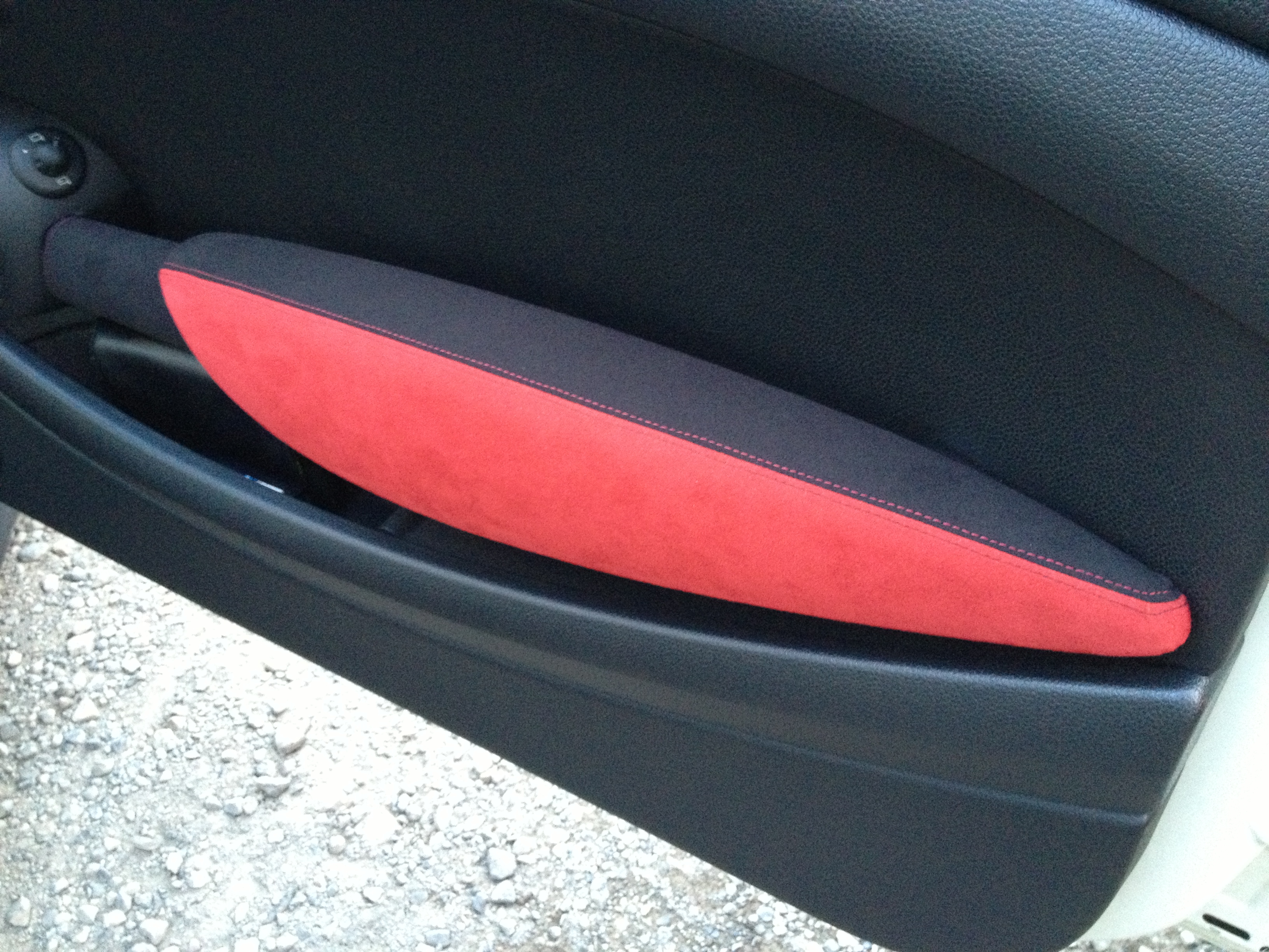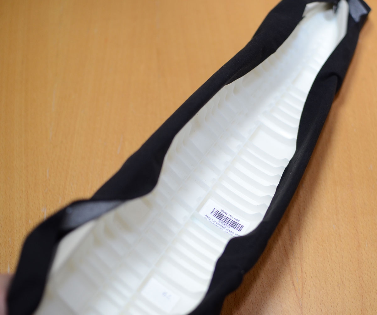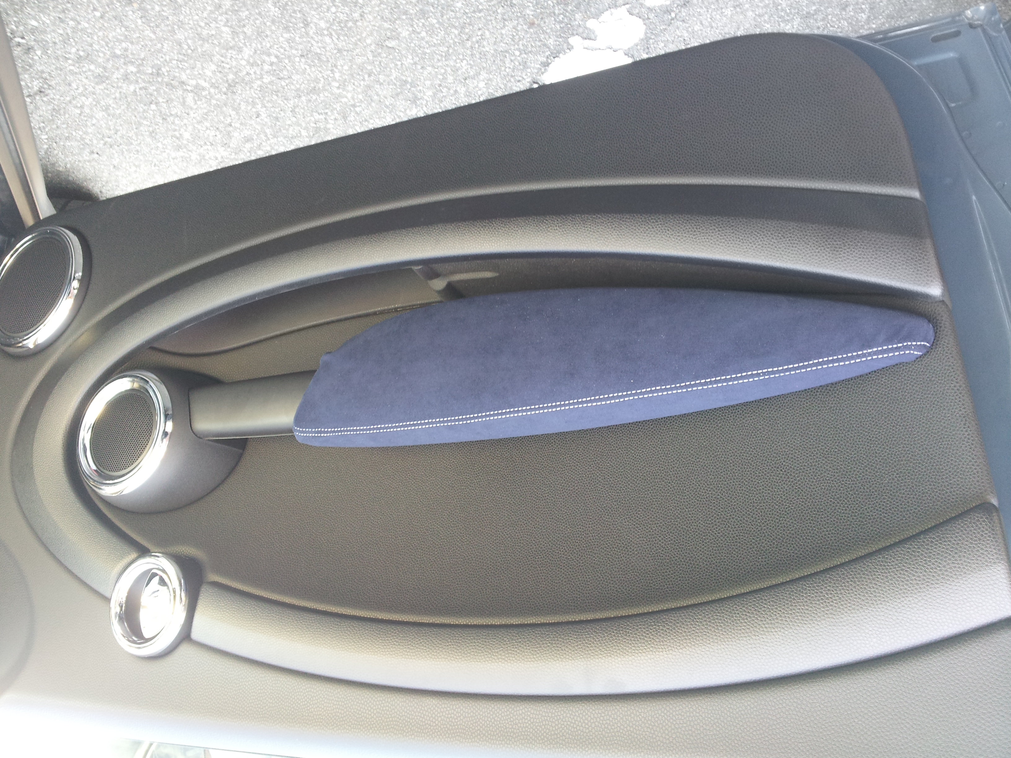 BMW MINI(R56系)のアームレストを高級スポーツカーの内装のようなバックスキン風の生地にするカバーキットです。