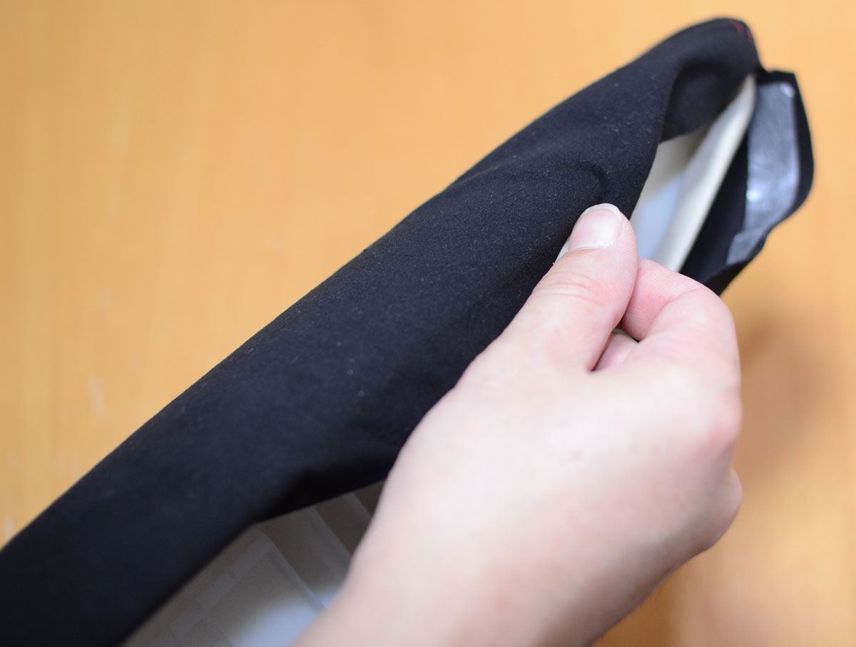 次にカバー側の施行です。カバーの裏側の周囲に付属の両面テープを貼ります。