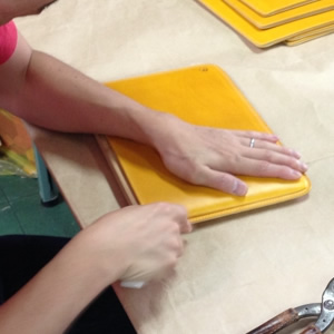 2.のり付け伸縮性のあるフェルトをきれいに
