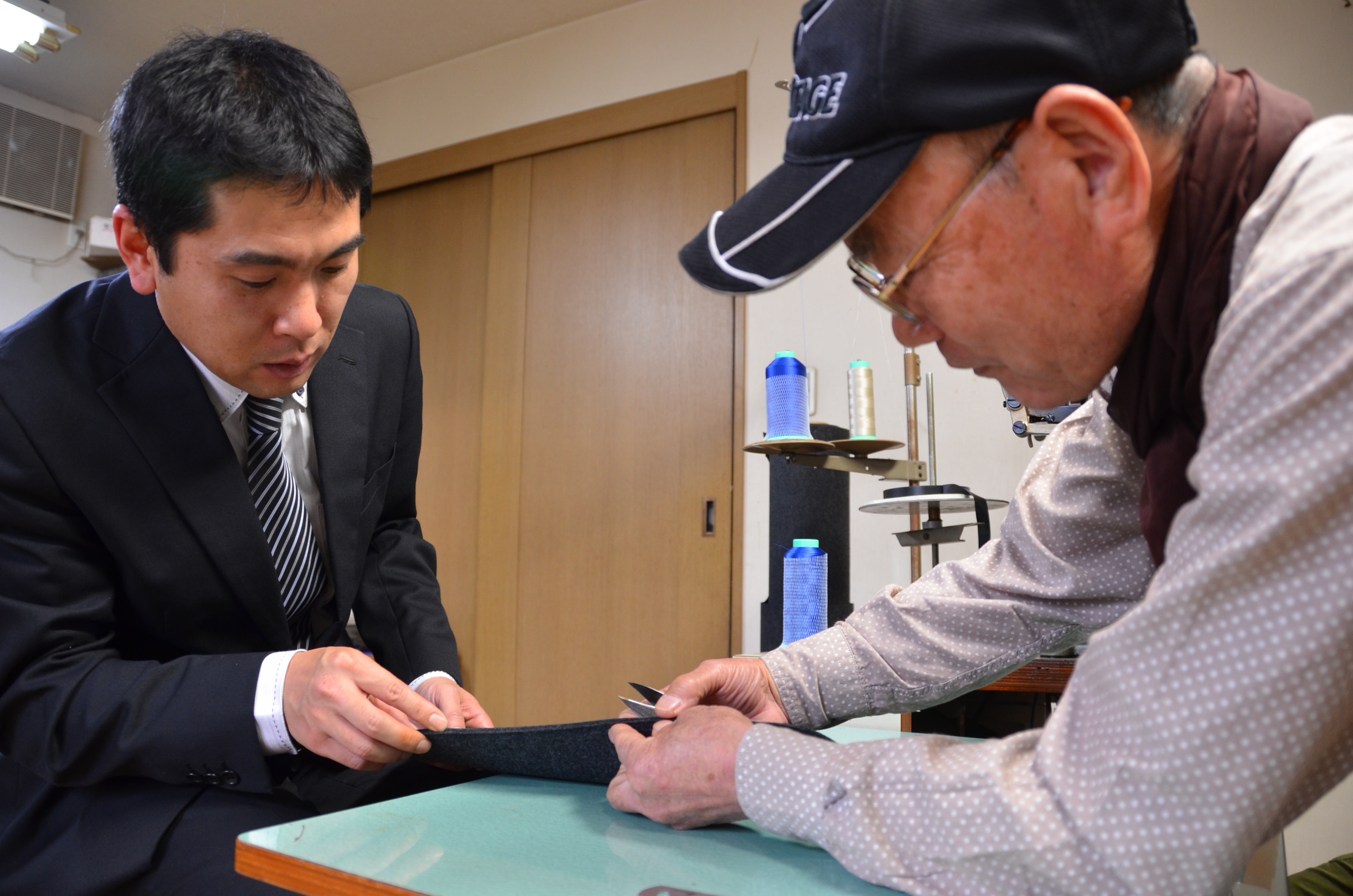 buzzhouse designでは創業当初から日本国内の職人を捜し、この特殊な素材を正確に縫製出来る職人として両氏に巡り会いました。