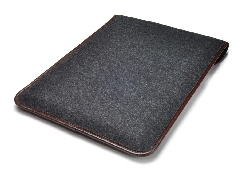 柔らかな質感のフェルトを使用したケース。周囲を本革のパイピングで処理したデラックスバージョン