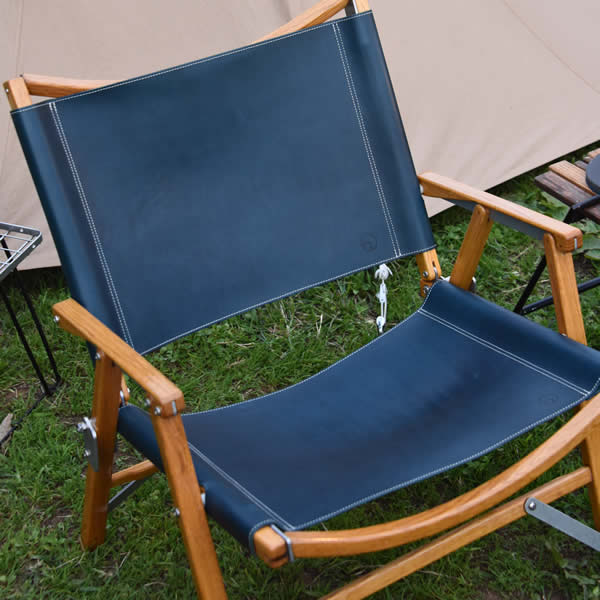 キャンプなどで人気のカーミットチェアですが、ナイロンの座面と背もたれを高級なイタリアンレザーに交換する事で、とても雰囲気のあるチェアーに変身します。
