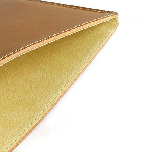 質感の高いイタリアンレザーの裏には、高級車の内装などで使う様なクロス素材のボンセーヌを全面に貼付けています。このクロス素材が、iPadを優しく包み、出し入れの時はしっとりとした高級感ある感触を味わえます。