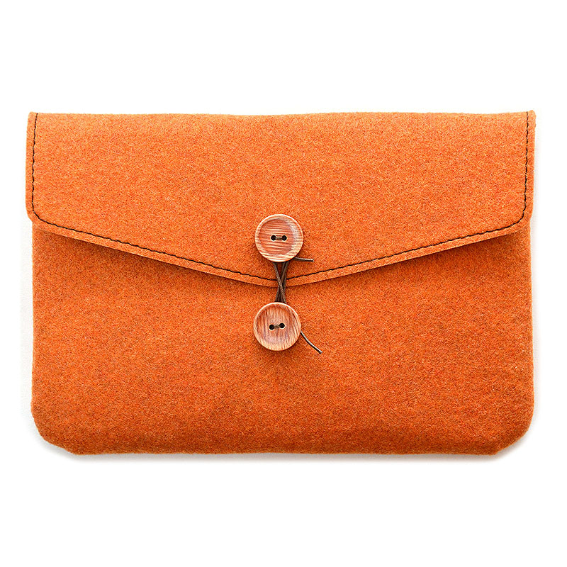 フェルトケースは、過剰な衝撃吸収素材などを使わず、非常にシンプルな作りにする事で、iPadのデザイン や携帯性という特徴を損なわない作りになっています。単なる保護するだけのOA用品というケースではなく、人に見せたくなるようなファッショナブルなデザインに仕上げてあります。