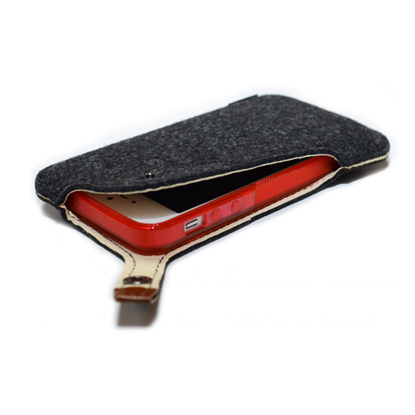 iPhone5S、iPhone5C共用です。少しゆとりのあるサイズですので、薄いタイプであれば他社製の背面ケースなどを装着した状態でもお使い頂けます。