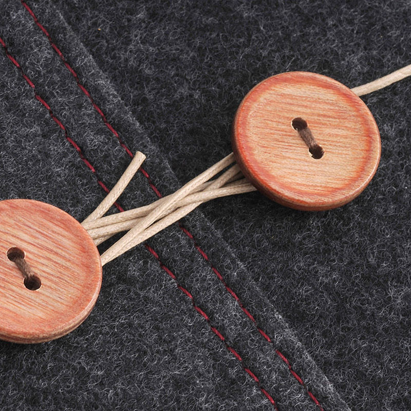紐とボタンで閉じるデザインは、本体を取り出す時に接触して傷になる事への配慮と、ドキュメントの延長という考え方からこの形になりました。過剰な保護ではなく、日常生活に必要な適度な保護を目指した結果です。