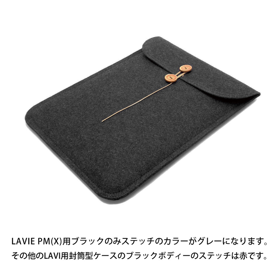 今回、日本の物作りというコンセプトに共感頂いたNECダイレクト様よりオファーを頂き、発売以来ご好評頂いているフェルトケースのNECのノートPCであるLAVIE用を製作する事になりました。LAVIE Z用からご好評頂き、2019年5月発売の新型LAVIE Pro Mobile用もいち早く製作いたしました。