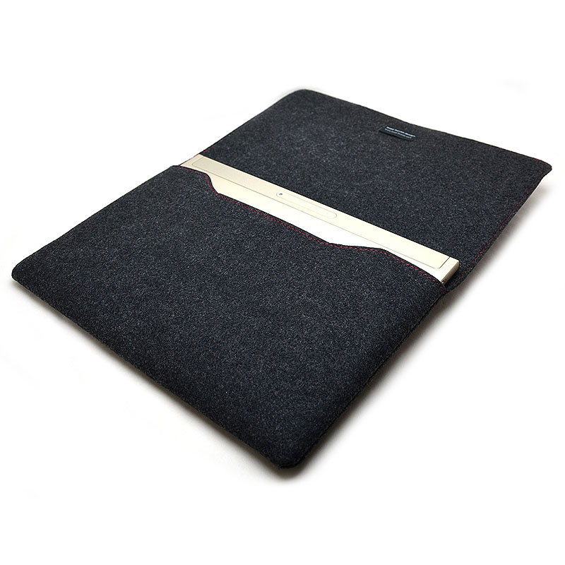 handmade felt cluchcase for LAVIE Hybrid ZERO 11.6型ワイドはフェルト素材を使用することで、滑るようになめらかにLAVIE Hybrid ZEROを収納、取り出すことができます。隙間無くキレイに収めるのは当然ですが、気持ちよく取り出せるのも大切なポイントです。